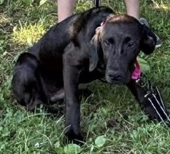 Notes: Carnilia, Labrador Retriever, female, Black with White, 3 years old, Large, Pet ID 58749776